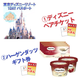 ディズニーorusj選べるペアチケット 景品パネル 目録 ビンゴ景品ハッピー